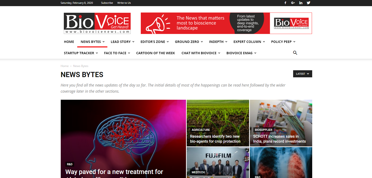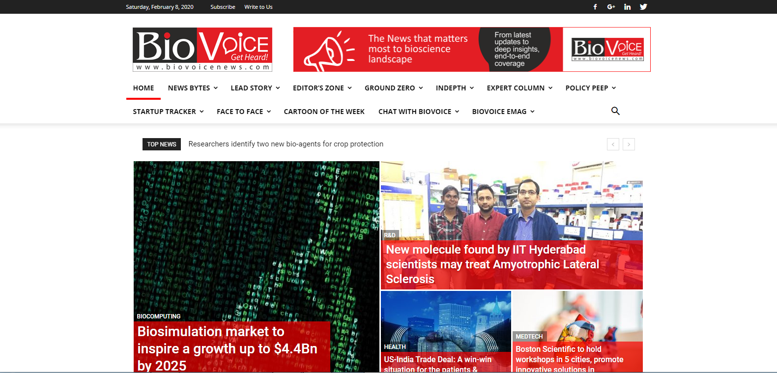 The BioVoice is an independent media outlet for coverage of Indian bioscience sector through its 24*7 live web portal. www.biovoicenews.com YEAR 2016 WE DID Website Development CATEGORY Wordpress COUNTRY INDUSTRY News Prev. Project All Projects Next Project