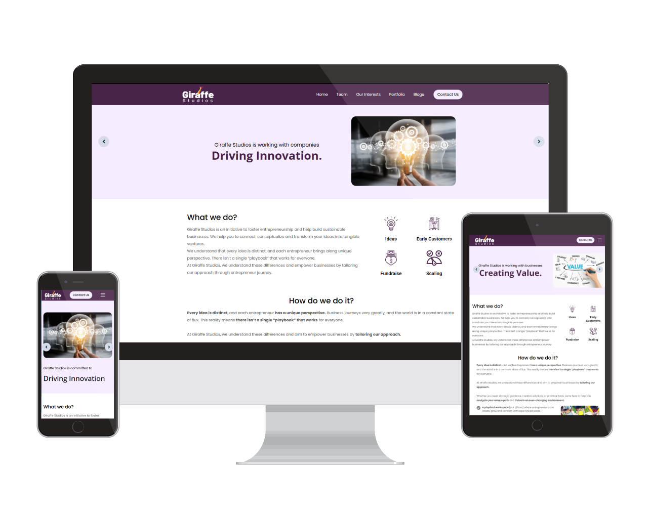 Giraffe Studios is an initiative to foster entrepreneurship and help build sustainable businesses. We help you to connect, conceptualize and transform your ideas into tangible ventures. We understand that every idea is distinct, and each entrepreneur brings along unique perspective.