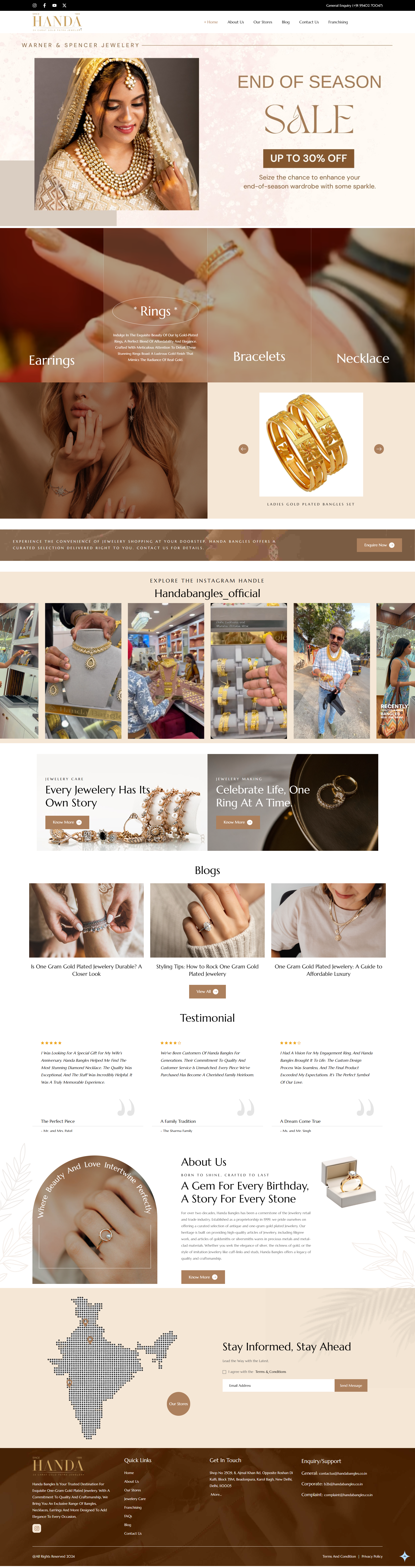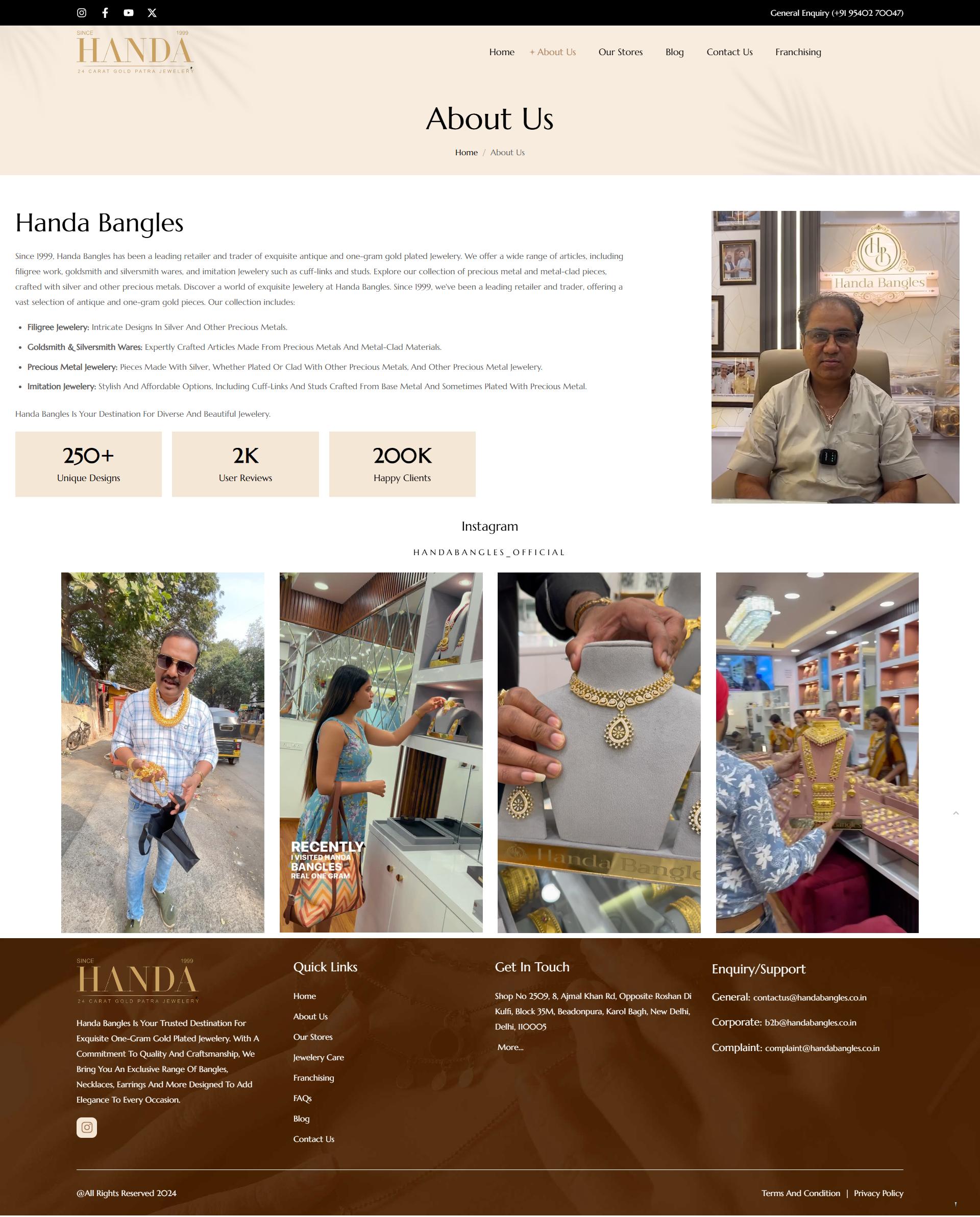 Since 1999, Handa Bangles has been a leading retailer and trader of exquisite antique and one-gram gold plated Jewelery. We offer a wide range of articles, including filigree work, goldsmith and silversmith wares, and imitation Jewelery such as cuff-links and studs. Explore our collection of precious metal and metal-clad pieces, crafted with silver and other precious metals.