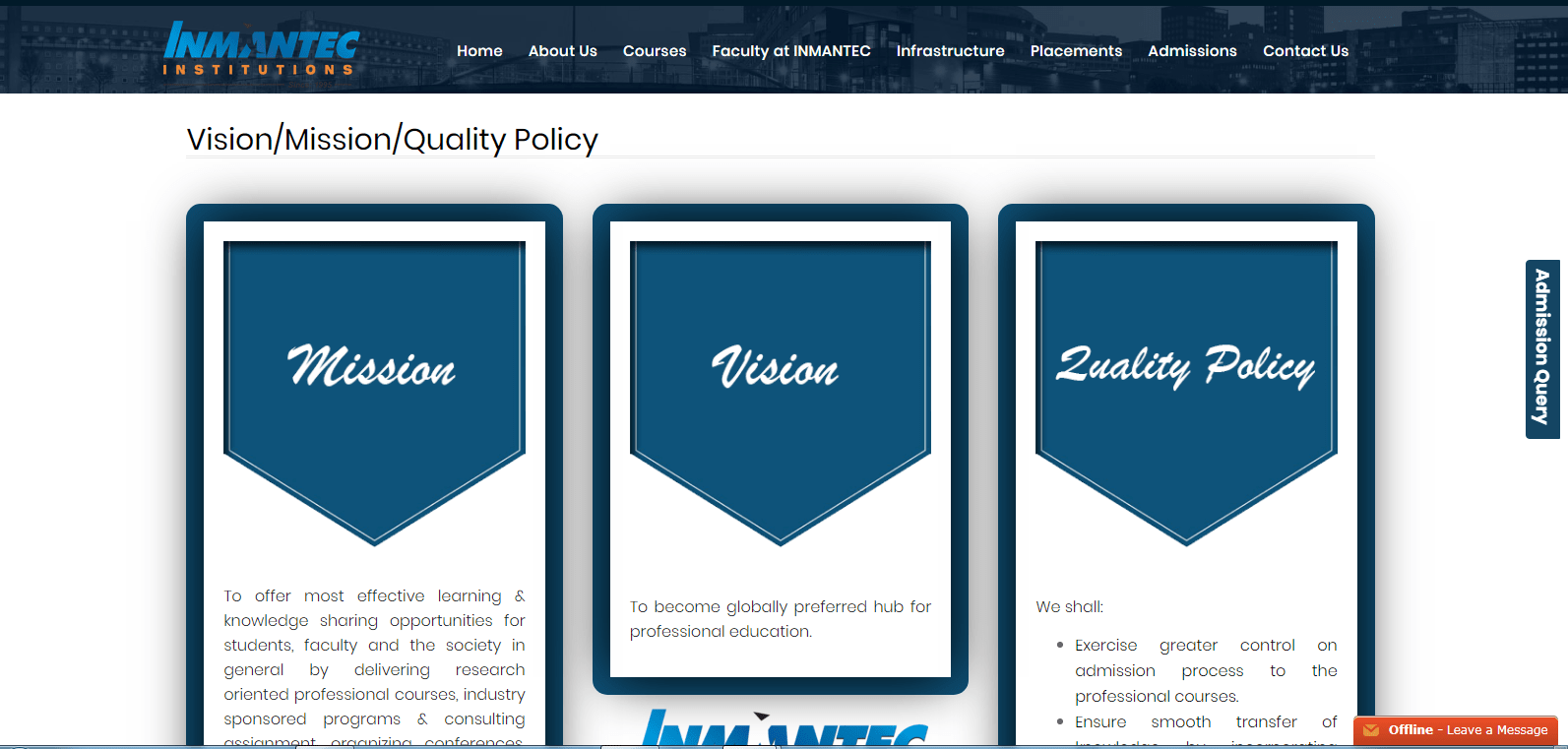 INMANTEC’s goal is to enhance professionalism by using all the possible resources to deliver qualitative and innovative pedagogy by enriching personal and professional skills of students as per industrial demands.