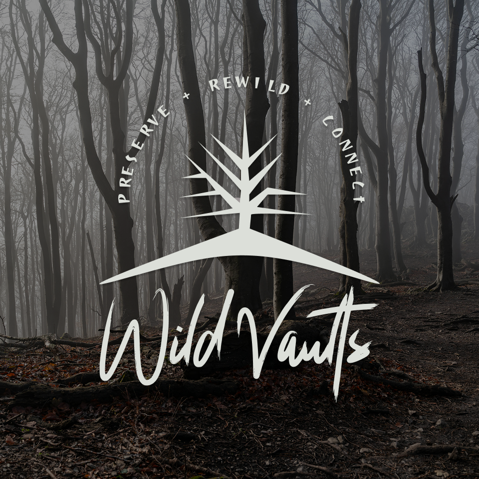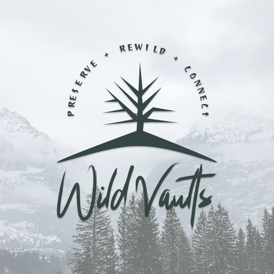 The Wild Vaults logo embodies a rugged and adventurous spirit, emphasizing preservation, rewilding, and connection with nature.